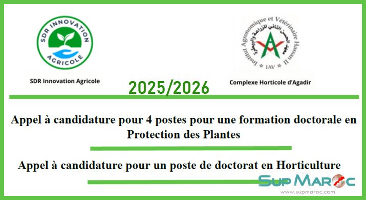Dans le cadre des collaborations entre La Société de Développement Régional en Innovation Agricole SDRIA et le Complexe Horticole d’Agadir CHA avec des institutions de recherche de renommées internationales, nous avons le plaisir d’annoncer l’ouverture des candidatures pour 1 poste de doctorat en Horticulture. Ce programme s’adresse à des profils chercheurs talentueux, motivés et désireux de contribuer à l’avancement des connaissances scientifiques et des pratiques agricoles innovantes ainsi qu’au patrimoine du CHA.