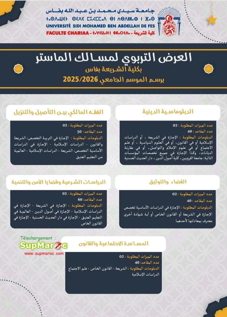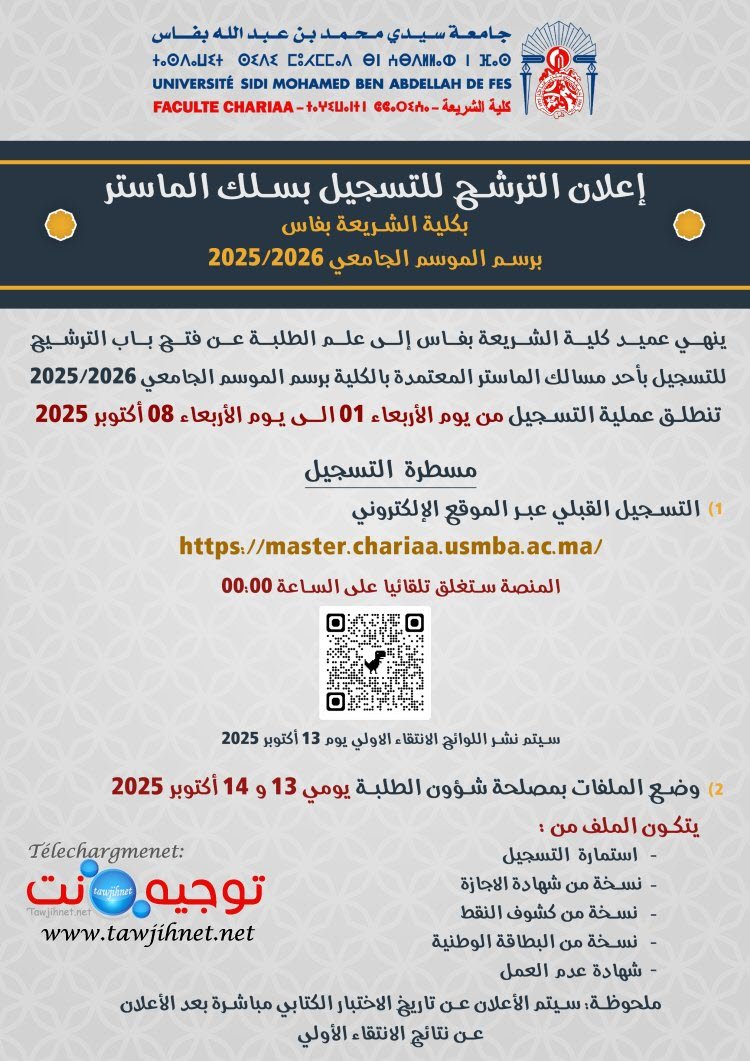 مباريات الماستر كلية الشريعة فاس برسم الموسم الجامعي 2025- 2026