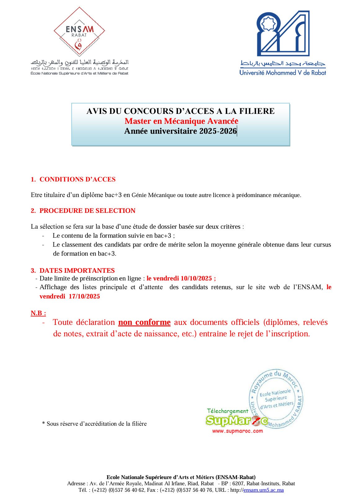 ENSAM Rabat concours D’accès Master 2025 / 2026