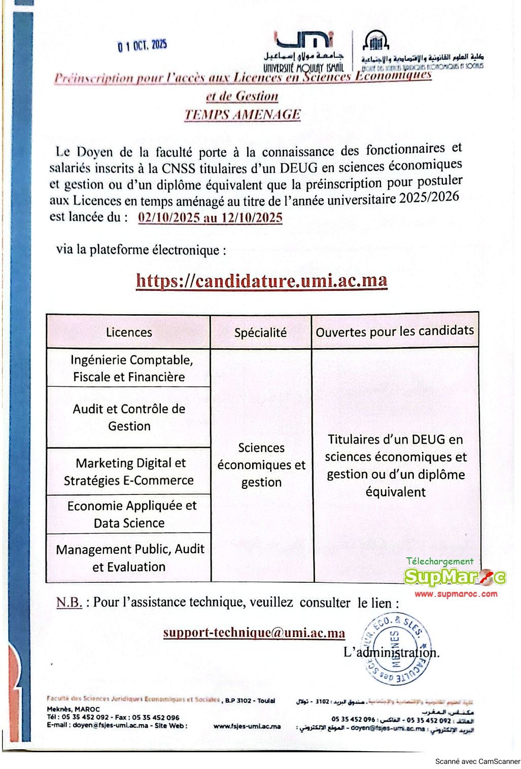 FSJES Meknès S5 Licence Excellence Aménage 2025 2026