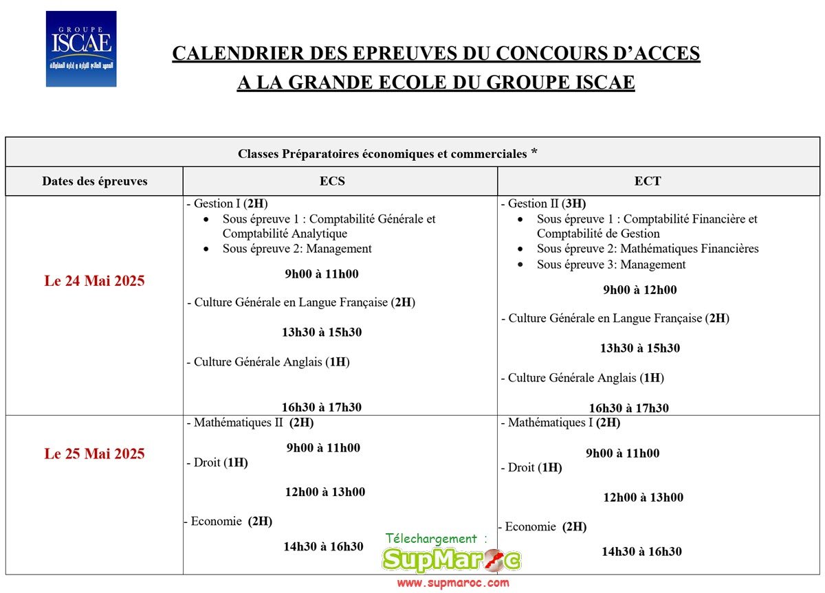 Concours Grande école ISCAE Casa Rabat 2025 / 2026