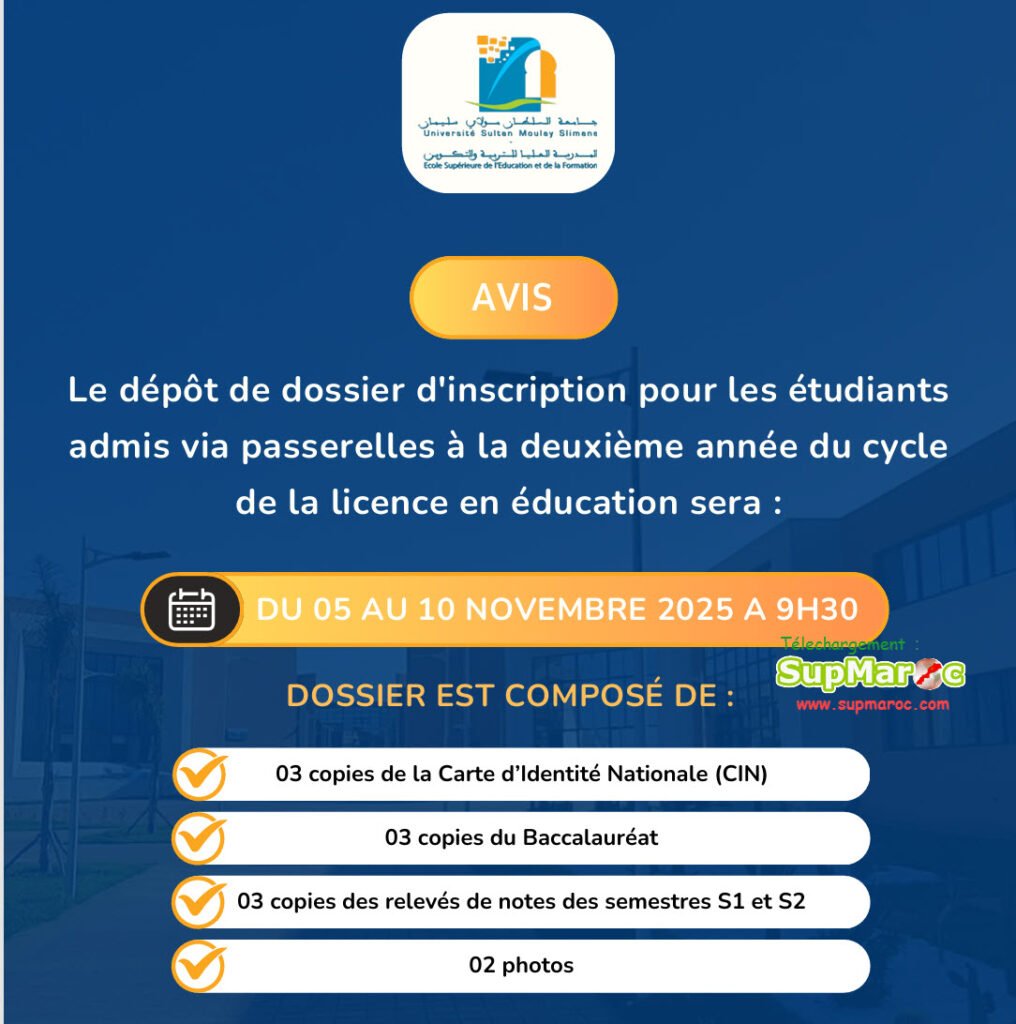 باك+1 : نتائج نهائية مباراة ولوج مسالك الإجازة في التربية الفصل الثالث المدرسة العليا للتربية والتكوين بني ملال