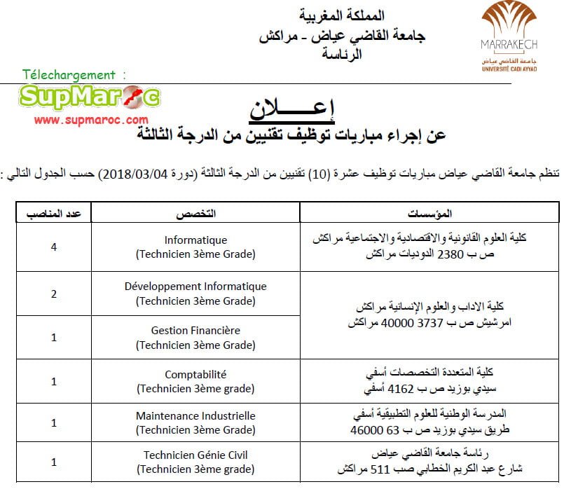 فعلى الراغبين في اجتياز هذه المباريات التسجيل عبر الموقع الالكتروني : concours.uca.ma